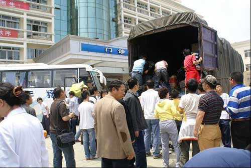 5月14日下午12时30分由卫生部派遣的天津市抗震救灾医疗队赴我市地震重灾区青川县开展抗震救灾医疗助工作,由于青川县道路不畅,停水停电,由市卫生局统一安排,天津市抗震救灾医疗队一行26名医疗专家来到我院帮助开展救治青川受震伤员工作。