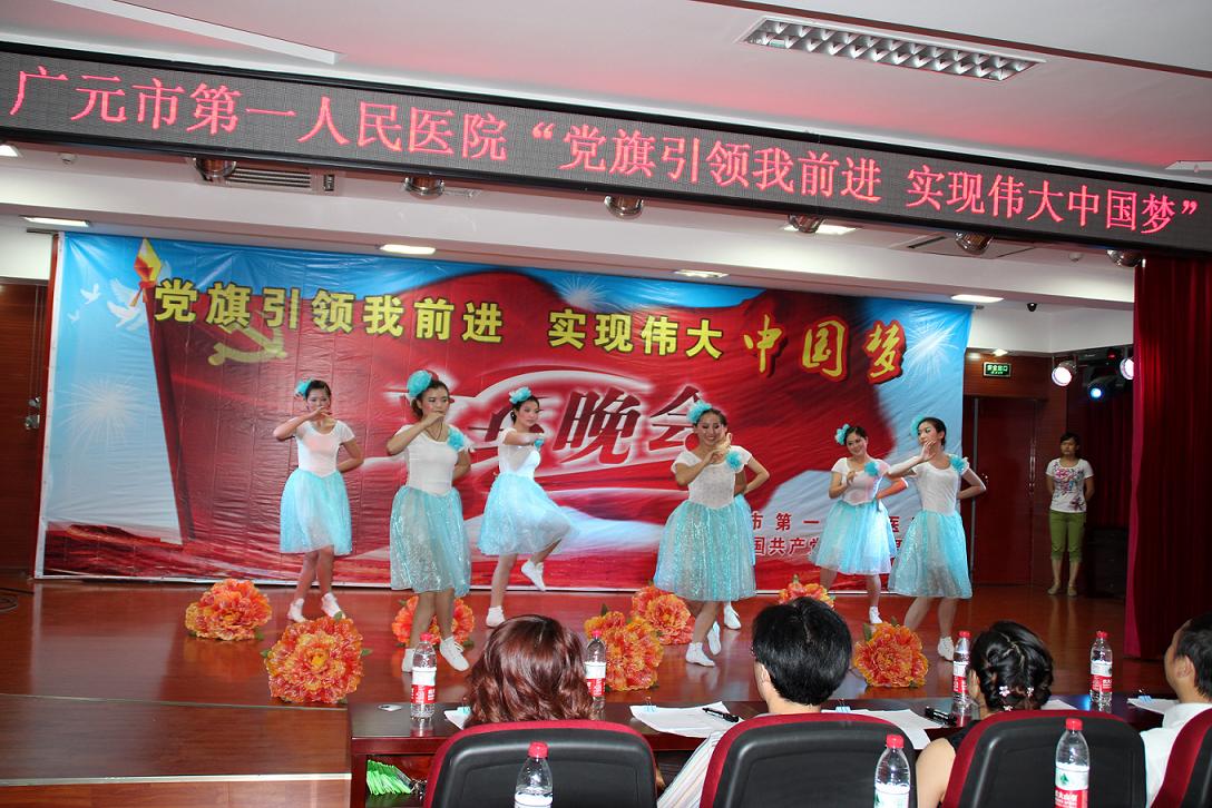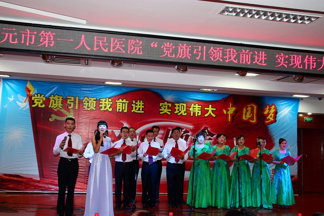 晚会在院领导班子成员合唱的《没有共产党就没有新中国》、《团结就是力量》歌声中拉开序幕。舞蹈、情景剧、乐器演奏、红歌联唱、诗朗诵等医务人员们自编自导的11个节目依次上演。演出节目精彩纷呈、高潮迭起,充分表达了全院上下在新的征程中,坚决跟党走、谱写崭新篇章的壮志豪情,展示了在努力构建社会主义和谐社会,实现伟大中国梦征程中的白衣天使以病人为中心、一切为了人民的身体健康、爱岗敬业、辛勤工作的精神风貌。