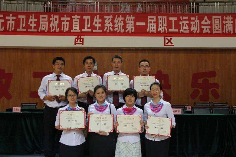 自7月4日起历时6天的市直卫生系统第一届体育运动会于7月9日在奥源体育中心圆满闭幕,这是广元市卫生系统首次承办高规格的大型综合性体育盛会。在本届运动会中,我院组织68名运动员参加了男子篮球、羽毛球、乒乓球、拔河、健身秧歌和象棋等6个项目的比赛,取得“八金”、“三银”、“两铜”和综合团体第一的优异成绩。在运动会中,我院职工表现出的良好精神风貌受到运动会组委会及嘉宾、广大观众的一致好评。