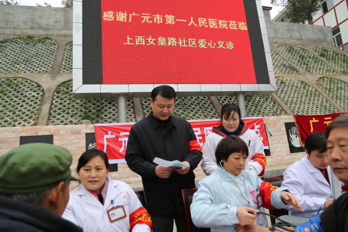 在上西坝女皇路社区参加下基层爱心义诊志愿服务活动的住院部党总支党员志愿者及副院长,认真为每一位前来就诊的社区群众诊断,细致地做好基础检查,耐心地解答群众提问,详细地提供咨询服务。此次义诊,党员志愿者服务队热情的态度,优质的服务,熟练的技术受到了群众的一致好评。