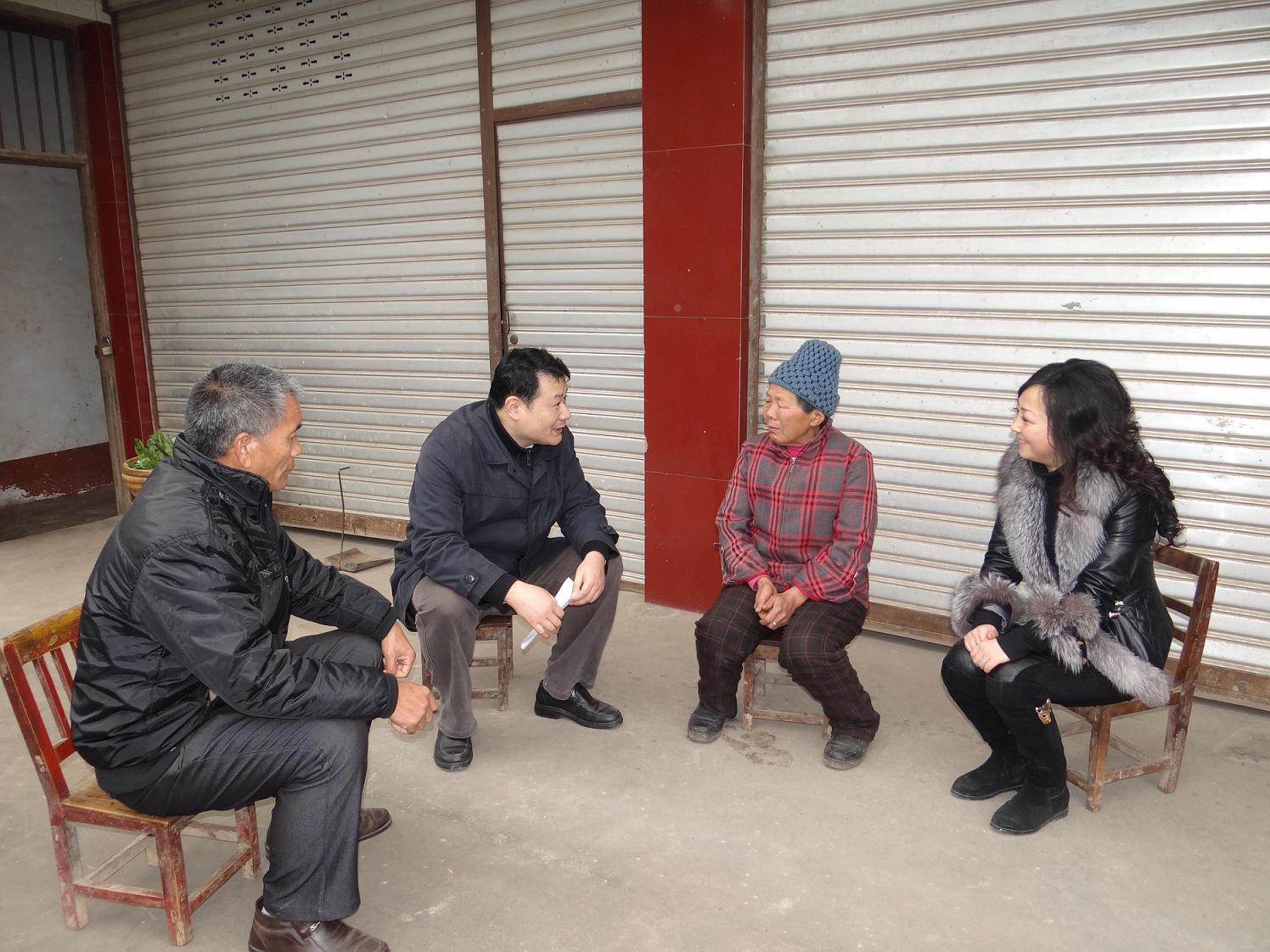 图三,党委书记吴春瑛(右三)深入村民家中倾听群众呼声,了解群众生产、生活情况。