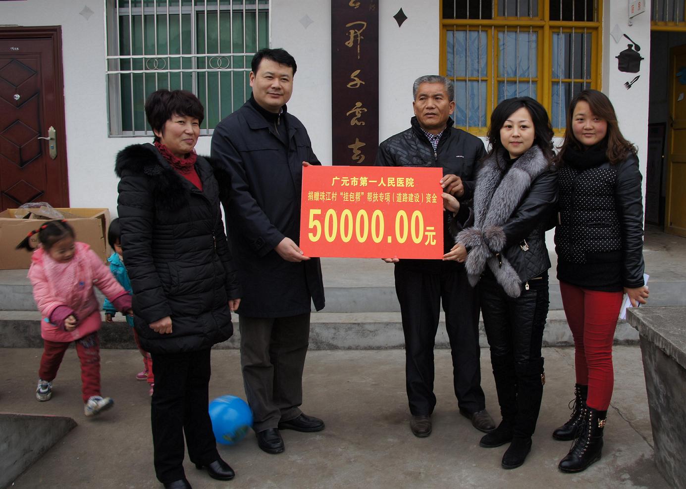 为认真贯彻落实党的十八届三中全会精神,深入开展党的群众路线教育实践活动,近日,广元市第一人民医院党委书记吴春瑛、院长刘峰带领院党政领导班子成员一行12人到对口帮扶村(苍溪县石门乡珠江村)开展“联系服务基层,联系服务群众”走基层,践行党的群众路线教育实践活动。向珠江村幼儿园捐赠图书241、玩具44套,向珠江村捐赠村道建设专项资金5万元,并同乡村干部共商扶贫帮困规划,谋划发展前景;班子成员分别走访结对联系帮扶对象,深入村民家中问寒问暖,与群众亲切交谈,倾听群众呼声,了解春耕生产情况,破解难题,用真情为民的实际行动服务群众。