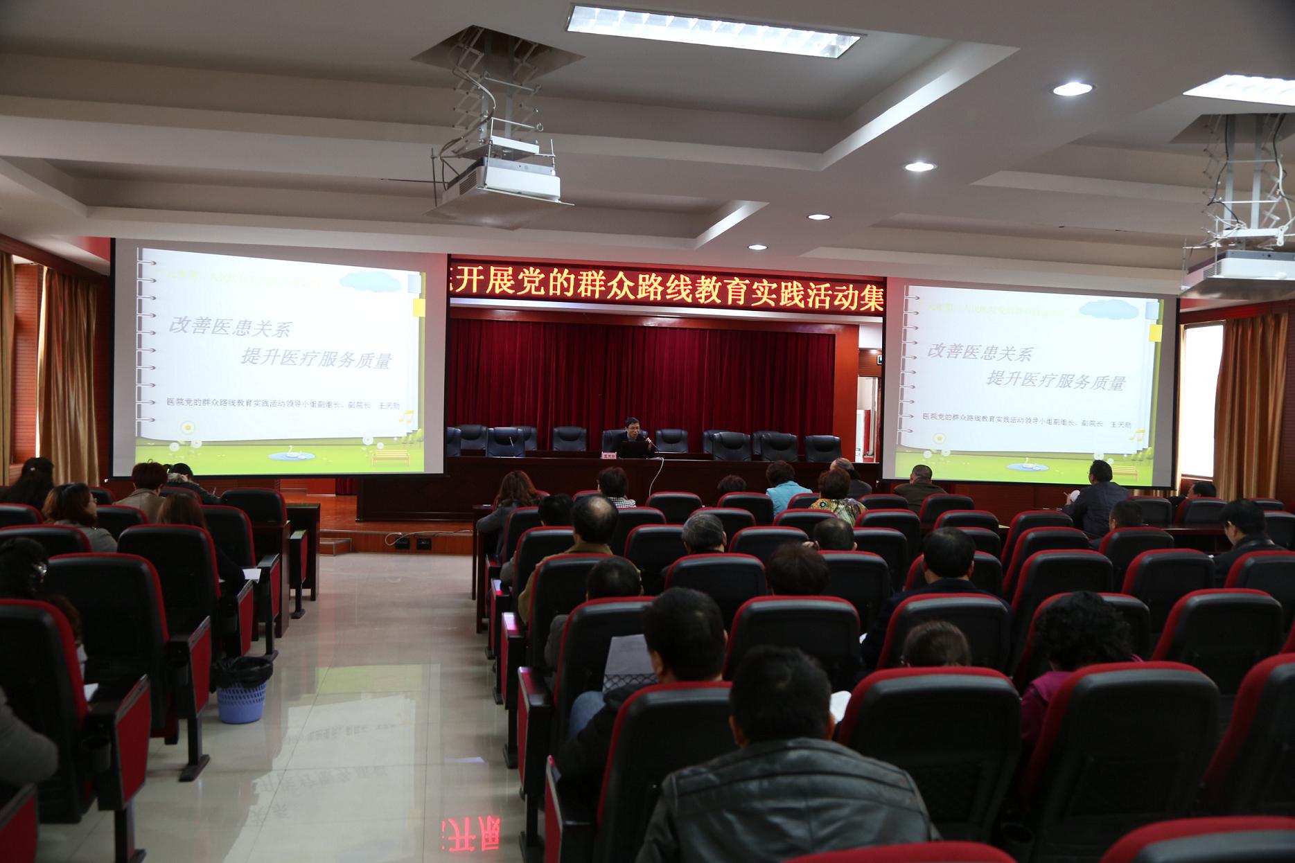 2014年3月18日下午,我院在院学术报告厅组织召开了党的群众路线教育实践活动第八次集中专题学习会。副院长、群众路线教育实践活动领导小组副组长王天勋对“改善医患关系、提升医疗服务质量”进行了讲解。院领导、中层干部、党员、部分群众参加了学习会。