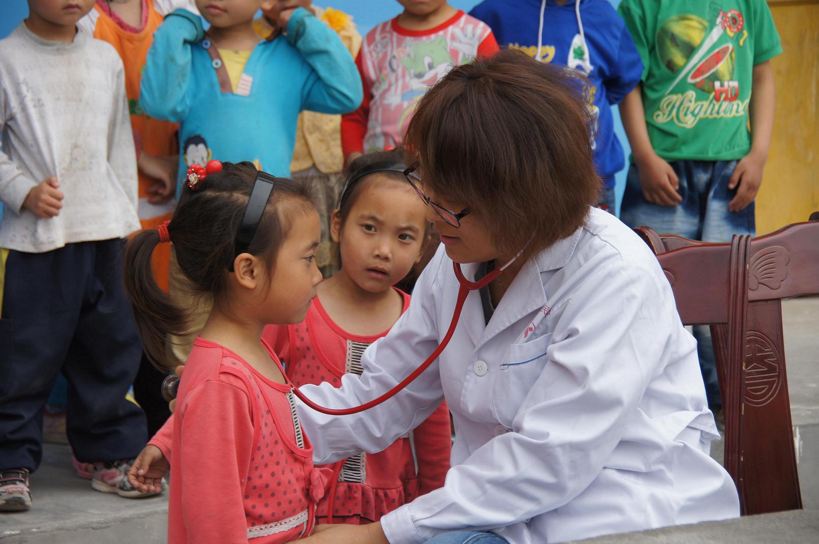 图二:儿科专家吴梦辉为孩子们进行健康体检