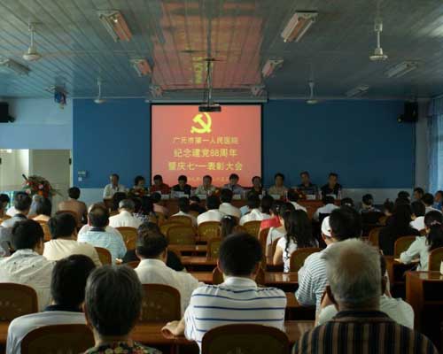 6月25日下午2:30时,广元市第一人民医院纪念中国共产党成立88周年暨庆七.一表彰大会在职工医学院二楼演讲厅隆重召开。