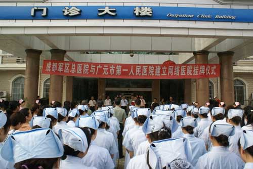8月25日上午,“广元市第一人民医院 与成都军区总医院建立网络医院”挂牌仪式在我院门诊大楼前隆重举行。市卫生局副局长杨碧春受副市长赵爱武、市卫生局局长康全德委托出席挂牌仪式并讲话,市卫生局医政科科长欧德贵、成都军区总医院副院长高国民及医务部和普通外科中心、神经外科、神经内科、消化内科、PEC—CT中心的专家,市第一人民医院领导出席了仪式。挂牌仪式由我院党委书记、副院长何运昉主持。