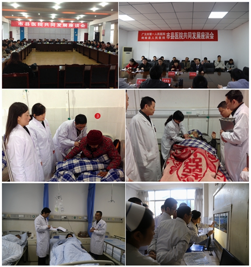11月4日至11月5日吴春瑛书记一行16人分别在剑阁县人民医院、剑阁县中医院参加了座谈会。会上,吴春瑛书记将我院的基本情况做了详细介绍,包括人才、技术、设备、环境、管理等方面,并提出,希望市县两级医疗机构之间加强联合、交流,通过协调各专业互相对接、互相促进、加强沟通、实现双赢。随后两院参会人员就合作方式以及怎样解决目前合作中的瓶颈问题进行了深入的探讨,并对双方建立良好的协作关系以及双向转诊方面建立长效合作机制达成了一致共识。会后,我院专家团队分别在各院的相关科室进行了业务查房。