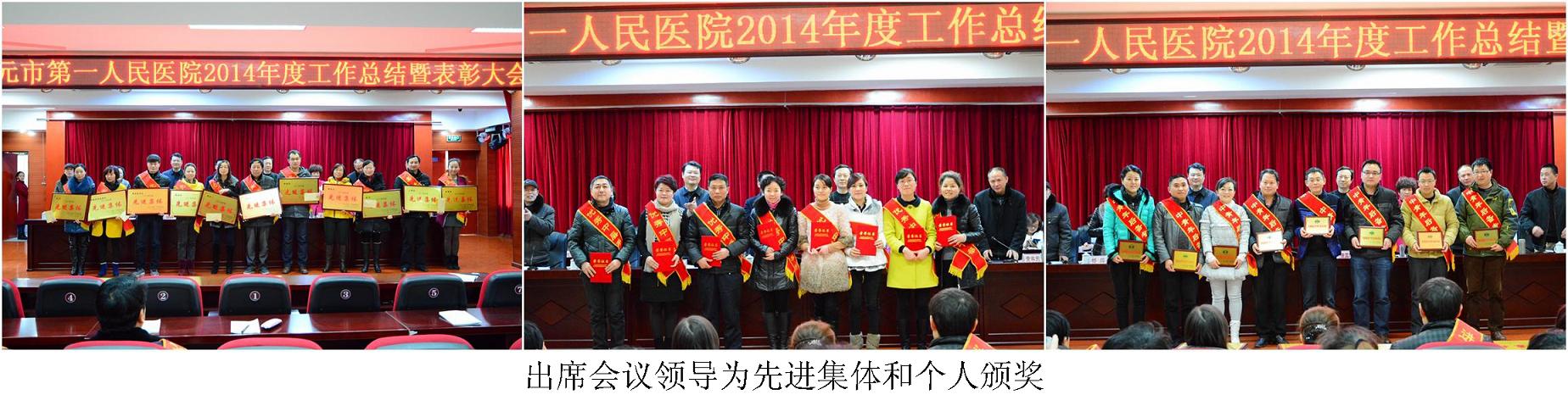 院党委书记吴春瑛、副院长杨萍、党委副书记黄学东、工会主席廖雁、纪委书记晏荣分别宣读了医院关于2014年度先进集体、先进个人的表彰决定,2014年度目标考核结果,2014年度中层干部考核结果,首届优秀中青年后备专家名单和2014年度省市科技进步奖及省市重点专科项目的表彰决定;共表彰了11个先进集体、61名先进个人、2名离退休工作积极分子、16名优秀中层干部、8名优秀中青年后备专家、1项省医学会科技进步奖、2项市级科技进步奖和3个重点专科建设项目。出席会议领导为获奖集体和个人颁发了荣誉证书。