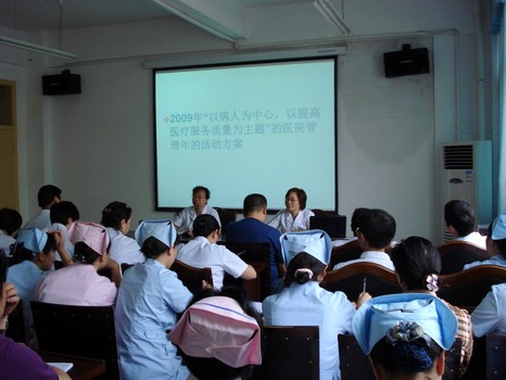 为认真贯彻落实卫生部《医药卫生体制改革近期重点实施方案(2009-2010)》、《2009年“以病人为中心,以提高医疗服务质量为主题”的医院管理年活动方案》,不断提高医疗服务质量,强化医疗服务能力,提高医疗安全意识,改进医疗安全管理,我院于6月16日下午组织全院临床、医技科主任、护士长及全体医护人员召开了2009年“以病人为中心,以提高医疗服务质量为主题”医院管理年活动动员大会。