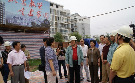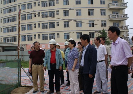 在我院外科综合楼建设工地,杨晋平院长和中国海油四川震区援建项目组副总经理陈炯向李登菊常委就我院的灾后恢复重建工作及外科综合楼工程的进展情况作了汇报。李登菊常委代表省委、省政府对中国海油给予四川灾区的无私援建表示感谢,向中国海油援川项目组工作人员的辛勤工作表示诚挚的谢意。同时指出,灾后重建一定要保证工程质量、安全和进度,还要重视对人才的培养和制度的建设,软件、硬件都要上水平,及早完成灾后恢复重建任务。