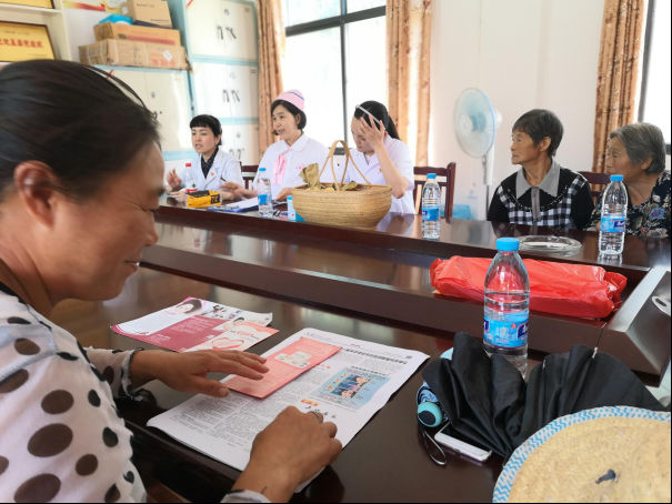 为关爱农村中老年女性身体健康,增强中老年女性疾病防范意识,2019年7月9日下午,市第一人民医院住院部第三党支部书记谢珊莉带领党员同志、入党积极分子及部分护士顶着炎炎烈日,深入昭化区红岩镇广吉村开展主题党日活动,为当地村民进行安全健康知识讲座和免费义诊。