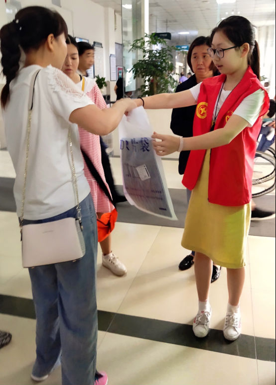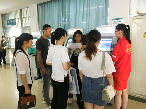 活动前,医院门诊部对志愿者进行了专题培训,包括医院整体概况、基本行为礼仪、作息规章制度、志愿服务主要内容、安全注意事项等。随后,带领大家熟悉医院门诊工作环境,并讲解了具体工作流程。门诊大厅人流如梭,蒲公英志愿者们热情高涨,迎送行动不便的患者,帮助使用自助服务终端,帮助领取检查报告单,耐心解答患者疑问,维持窗口排队秩序,营造了文明有序的就医环境,提高了医疗服务效率。小小蒲公英说:“很多爷爷奶奶行动不便,他们的确需要我们的帮助”。
