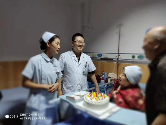 寒来暑往,2019年9月4日晚上七点,此刻的广元阴雨绵绵,晚风袭来,丝丝凉意入骨。“祝你生日快乐,祝你生日快乐……”,突然阵阵欢快的歌声划破了病区的寂静,循着歌声找去,我们看到了市第一人民医院全科医学科第十四病房里正上演着温暖、热闹、温馨的一幕。