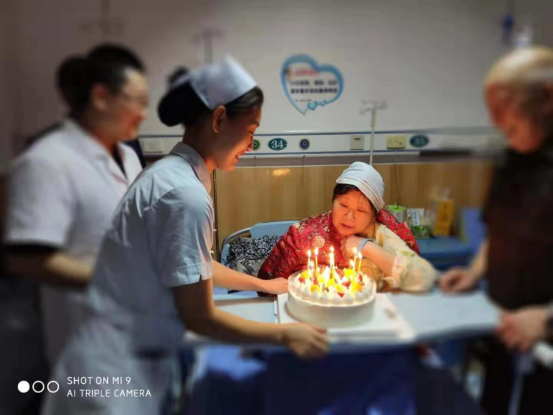 这一天,对于吴奶奶,对于我们,都是特殊的一天。于吴奶奶而言,这可能是她第一次在医院过生日,收到医护人员精心准备的爱心蛋糕与真挚的生日祝福,让她即使身卧病床仍不觉孤独清冷。于我们而言,能为患者送去阳光送去温暖,将照亮生命的那束光化作希望根植于患者的心中,这是一份莫大的感动与成就。