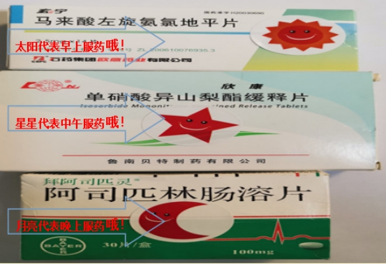 针对部分患者不识字,粘贴图案标注服药时间