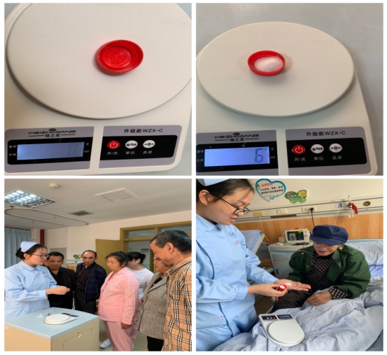 科室患者高血压、冠心病、心力衰竭等常见疾病都与饮食习惯有密切的关系,为了帮助患者养成健康的饮食习惯,医护人员举实例,耐心为患者讲解日常生活中低盐低脂饮食(每天盐摄入量<6g)的重要性,对于摄入量把控不准的家属和患者,医护人员现场示范解说、指导,用食物平称称出实物重量,给他们更加直观的感受。