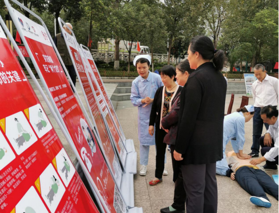 9月25日,市第一人民医院心血管内科团队在科主任邓小军、副主任胡永奎、护士长龚敏及副护士长罗晨心的带领下,一行11人在广元市苴国广场开展世界心脏日系列活动。