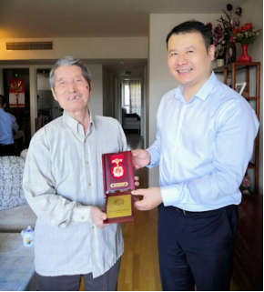 9月24日,市第一人民医院党委副书记、院长刘峰在人力资源科相关人员的陪同下,前往北京慰问我院退休干部金家和同志、李相坤同志,为他们颁发佩戴纪念章,送去了慰问金,并向老同志们致以崇高的敬意和亲切地问候,感谢他们为国家、为医院的发展作出积极的贡献。
