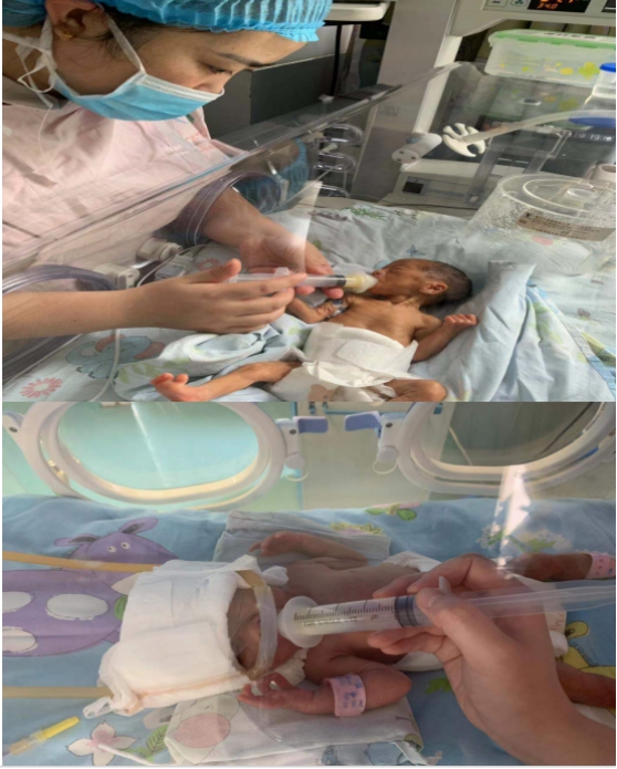 经过医护人员的精心护理,“袖珍宝宝”终于战胜了呼吸关,有了规则的自主呼吸。但是新的难题又接踵而至了,宝宝不能吸吮,吞咽能力差,腹胀、血便,十分瘦小,一根根肋骨清晰可见,看着都让人心疼,同时出现了发烧、严重贫血等症状。医护人员日夜守护、细心呵护。吞咽能力差,护士阿姨便用针管一滴一滴地给宝宝喂奶,每天算着宝宝增长的体重,“今天长了15克,2天长了0.5两……”每每发现婴儿的体重增加了,护士阿姨们便欣喜不已。