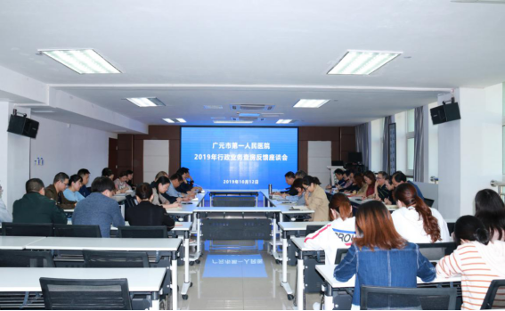 查房结束后,在综合楼五楼三会议室召开反馈座谈会,心胸血管小儿外科、心血管内科一二病区科室主任就本科室在工作开展中需要职能科室帮助解决的问题作简要汇报,各职能科室负责人就查房情况进行反馈并解答临床科室所提问题。
