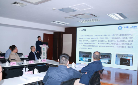 10月23日,胸痛中心认证工作委员会委员、兰州大学第一医院张钲教授,重庆医科大学附属第三医院仝识非教授,解放军第920医院郭瑞威教授,胸痛中心广州区域认证办公室主任、解放军南部战区总医院易绍东教授等一行4人莅临市第一人民医院,对医院申请国家胸痛中心认证进行现场核查。市政府副秘书长王金川,卫健委党组书记、主任袁明胜,卫健委医政医管科科长刘柏元出席会议。市第一人民医院党委副书记、院长刘峰,党委书记吴春瑛等院领导班子成员,医院胸痛中心总监、副总监、协调员,心内科、急诊科、导管室等相关科室负责人以及120急救系统人员、各县区网络医院代表共150余人参加汇报会。会议由易绍东主任主持。