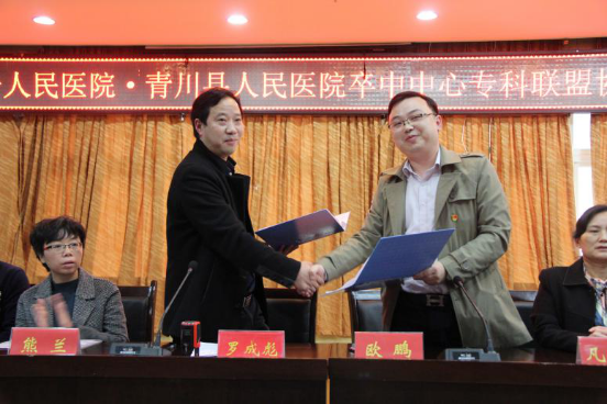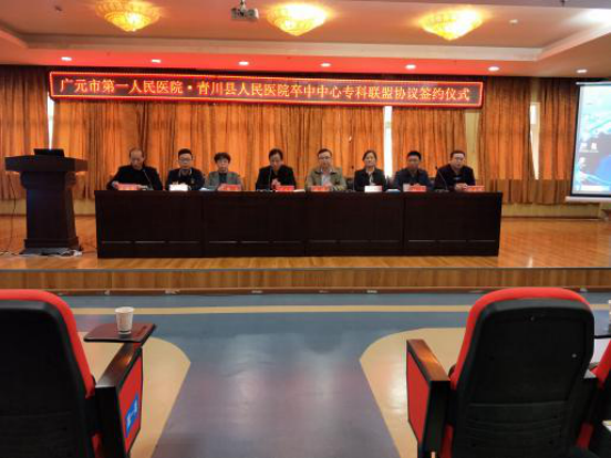 签约仪式上,青川县人民医院副院长罗成彪首先对市第一人民医院专家一行表示热烈欢迎,并表示此次学术会议是为了进一步推进分级诊疗体系的建设,提高青川县早期诊疗和治疗心脑血管疾病的能力,降低青川县脑卒中患者的病死率和致残率,改善预后的生存质量,满足广大患者日益增长的医疗需求。今后将与市第一人民医院建立更加完善的卒中患者双向转诊的绿色通道,建立卒中患者规范化治疗的长效机制,让青川县人民医院脑卒中患者得到更加精准的治疗。