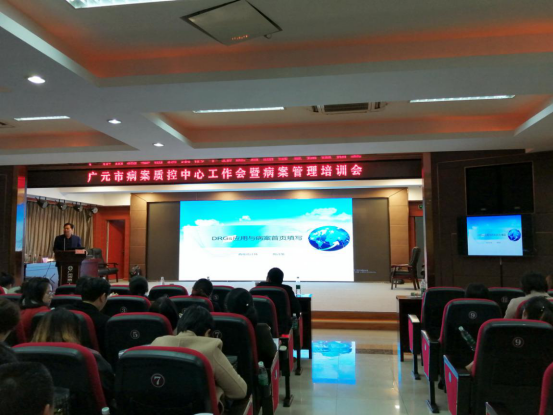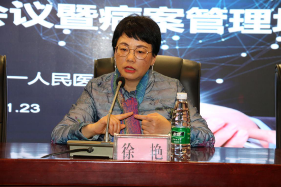 随后,省病案质控中心专家徐艳教授代表省质控中心作了发言。她从今年国家三级公立医院绩效考核指标和医保DRG付费改革出发,强调了提高病案首页质量的重要性。