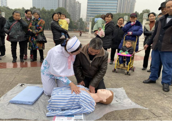 2019年12月13日上午10点至12点,在利州广场,市第一人民医院心胸血管、小儿外科护理团队协ICU医护团队共同举办针对普通市民的“心肺复苏”演练和教学活动。此次共有7名南丁格尔志愿者参与活动。