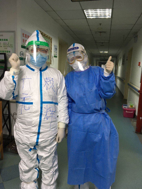 说到危险,他讲了这么一个故事。肺炎患者很多都还伴有别的疾病,他们病房就有一位精神疾病患者。一天,患者发病了,异常狂躁,医护人员前去安抚,患者却抓破了其中一个人的防护服。可是,面对突发情况,他考虑不了那么多,暴露就暴露吧,患者安全才最重要。赖辉说,很多时候当遇到患者和自己做选择题时,我们的医护人员会毫不犹豫以命换命。面对危险,我们从来都是迎难而上保护人民群众的逆行者,绝不会退缩半步。