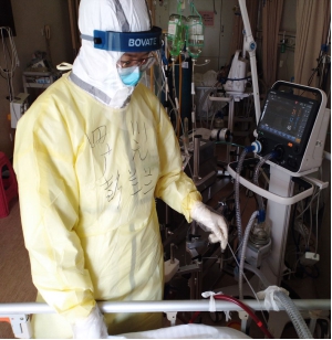 在前线,姑娘们昔日美丽的脸庞被口罩、护目镜遮挡。她们顾不上吃饭喝水,满脸勒痕,嗓子哑了,脸庞花了,甚至穿着尿不湿上班,依然精力充沛去战斗,努力实现“敬畏生命,救死护伤” 的铮铮誓言,她们的事迹被多家媒体相继报道。她们言行之间流露出的无私奉献精神,感恩情怀,对祖国、对家乡的热爱,令我们深深地感动。