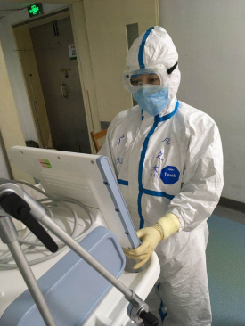 1月28日,医院5名护士作为广元市第一批援鄂医疗队的代表,黎明出征,驰援武汉。她们是重症医学科的90后护士彭兰兰,全科医学科主管护师李雪,呼吸内科主管护师何晓蓉、护师赵英明,感染科护士吴宝芳。她们被安排在武汉市红十字会医院阳性重症病房工作,那里是和病毒正面交锋的前沿阵地,除了对患者实施常规重症护理、生活照料外,还要负责院感防控措施的落实,她们的工作内容繁杂、工作量超负荷,被央视记者白岩松称为“密集护理”。监护室是个相对密闭的环境,再加上密不透气的防护服和起雾的护目镜,给她们的护理操作带来极大的不便,直接接触患者的分泌物、排泄物被感染的几率又非常大,面对这些,使命在身,她们却从没畏惧过。