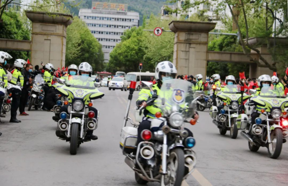 警车的护卫队开道