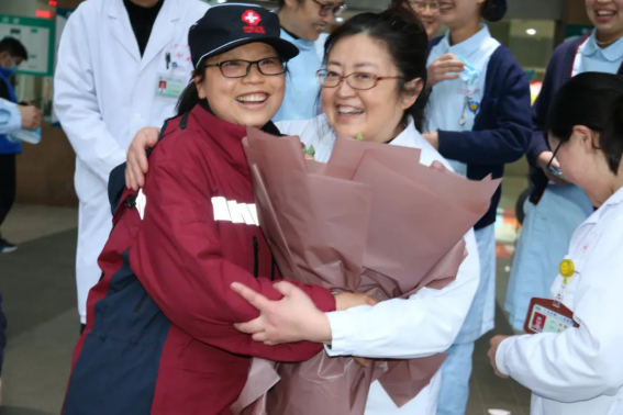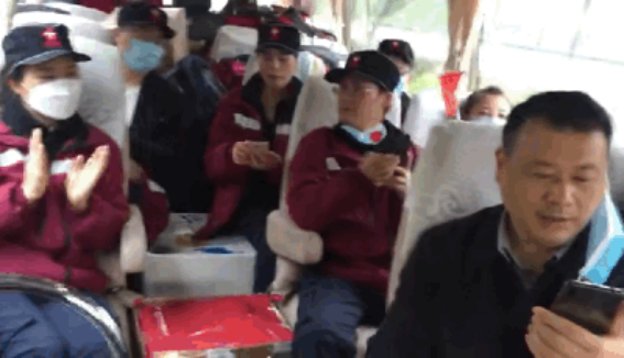 4月2日,吴春瑛书记、刘峰院长前往成都,迎接归来的白衣勇士。“搞快!我要起来了,回家!”4月3日一早,彭兰兰按捺不住回家的激动,在群里高兴地说道。