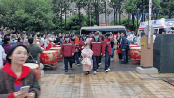 市委副书记冯磊、副市长吴桂华、市卫健委主任袁明胜等以及市第一人民医院党委书记吴春瑛,党委副书记、院长刘峰等全体领导班子成员、医护人员代表,队员家属早已在市政府广场等候多时,翘首以待归来的英雄。