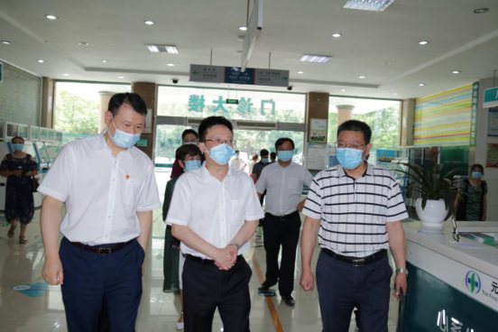 2020年6月24日,市委副书记冯磊带领市卫健委主任袁明胜等一行来院开展新冠肺炎疫情防控工作调研。党委书记吴春瑛,党委副书记、院长刘峰等领导班子陪同。