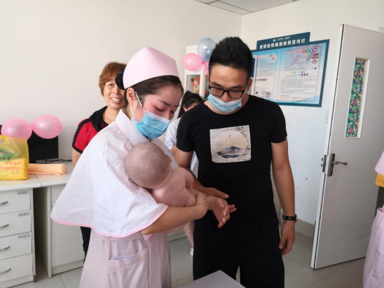 宣讲结束后,在产科护士长的带领下,护士姐妹们还同参加活动的宝爸宝妈们进行了深度的交流以及现场互动教学,手把手地教会新手爸妈更换纸尿裤、拍奶嗝以及乳房护理技巧,并赠送小礼物表示祝福。