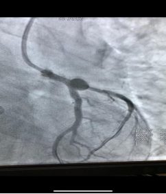 患者男,20岁,跑步时突发心跳停止,前期已经复苏8分钟,电除颤3次,现血流动力学、循环极不稳定,血压60/40mmHg,心率140多次/分,经积极对症处理以后,患者病情相对平稳。但患者对血管活性药物非常敏感,血压可以在换泵的一瞬间跌至冰点,这让有着丰富临床经验的何剑成医生也感到十分困惑。考虑到心脏有器质性病变,何剑成医生果断邀请心血管内科的专家会诊。专家会诊后,建议行冠脉造影。