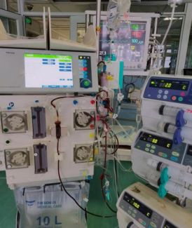 CRRT是通过体外循环血液净化方式连续、缓慢清除水及溶质的一种血液净化治疗技术,以替代肾脏的功能。相较普通血液透析而言,CRRT延长了血液净化治疗时间而降低了单位时间的治疗效率,使血液中溶质浓度及容量变化对机体的影响降到最低,同时采用高通透性、生物相容性好的滤器;为重症患者的救治提供了及其重要的内稳态平衡。自开展该业务以来,在治疗组医生护士的通力协作下,已为包括急性重症胰腺炎、肝衰竭、急性中毒及多器官功能衰竭患者进行了百余次的CRRT治疗,其中包括人工肝、血液灌流、血浆置换及双重血浆分子吸附等,取得了显著的治疗效果。