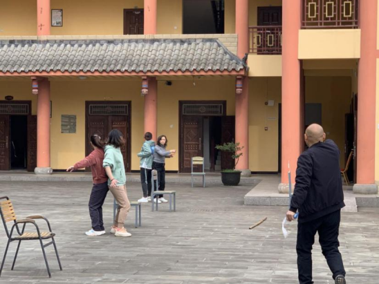 第二项趣味比赛为“携球越野”。队内不同人员两两组合,携带气球跨过重重障碍到达终点,黑队首战败而不馁,扳回一局。