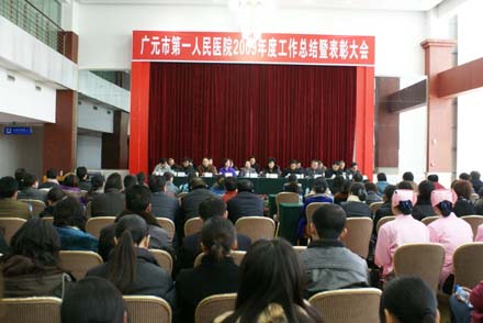 1月22日下午,我院在广元国际大酒店隆重召开《2009年度工作总结暨表彰大会》。市人大武斌副主任、市政府赵爱武副市长、市政协胡月鹤副主席、市政府莫勇副秘书长及市卫生局党组书记、局长康全德、副局长钮富荣、刘峰等领导应邀出席了总结表彰大会。会上院长杨晋平同志作了工作报告,回顾总结了2009年工作,安排部署了2010年工作任务;党委书记、副院长何运昉同志宣读了我院《关于表彰2009年度先进集体和先进个人和决定》,对12个先进集体和18个单项工作先进科室,66名先进个人进行了表彰及颁奖;市卫生局康全德局长作了重要讲话,市政府赵爱武副市长作了重要指示。大会由副院长张仕泽同志主持。