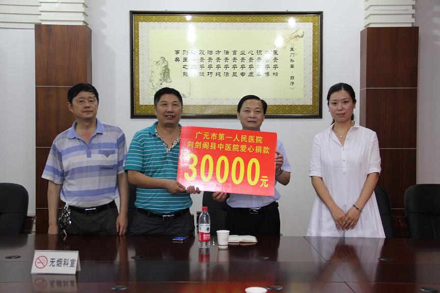 走访得知,洪灾中,剑阁县中医院门诊楼和住院楼一楼被淹,56位住院病人全部安全转移安置;剑阁县人民医院、剑阁县妇幼保健院也不同程度受损。实地了解了三家医院的受灾情况、抗洪救灾情况以及为灾区群众的医疗保障情况后,我院将7万元现金捐助给三家受灾医院,帮助他们抢险自救,尽快恢复常态,为受灾群众提供就医保障。
