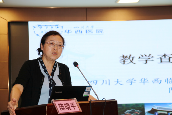 陈晓平教授详细讲解了教学查房的流程,从查房前的准备、到查房中的问诊查体等、再到查房讨论与总结、查房记录,为大家理清了开展教学查房的思路。同时,陈晓平教授针对什么是教学查房、教学查房的模式、教学查房的目的、教学查房的方式、教学查房的基本要求、教学查房的基本流程等方面进行了系统讲解。她表示,开展高质量的教学活动首先教师要有过硬的教学能力,然后要有学员的主动参与。