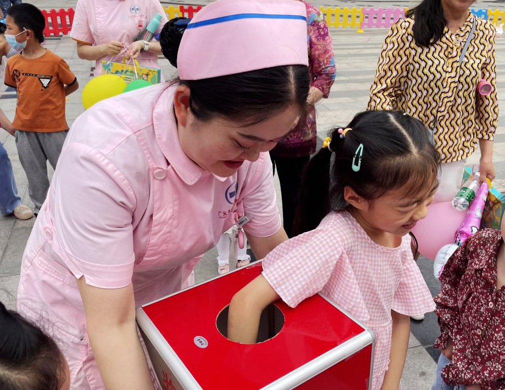 为了促进亲子之间的情感交流,护士小姐姐们邀请孩子和家长们现场参加充满童趣的小游戏,还为孩子们送上了精心准备的气球、玩具、科普书籍等节日礼物。萌萌哒的米奇和米妮陪伴着孩子们套圈圈、喂香蕉、趣味跑,欢声笑语洒满整个游乐区,现场成为了一片快乐的海洋。小朋友们不仅在欢乐中收获了知识和礼物,还促进了社交能力及认知能力的发展,拉进了家长与孩子之间心与心的距离,让在场的孩子和家长们感受到了“儿童节”的欢乐气氛。