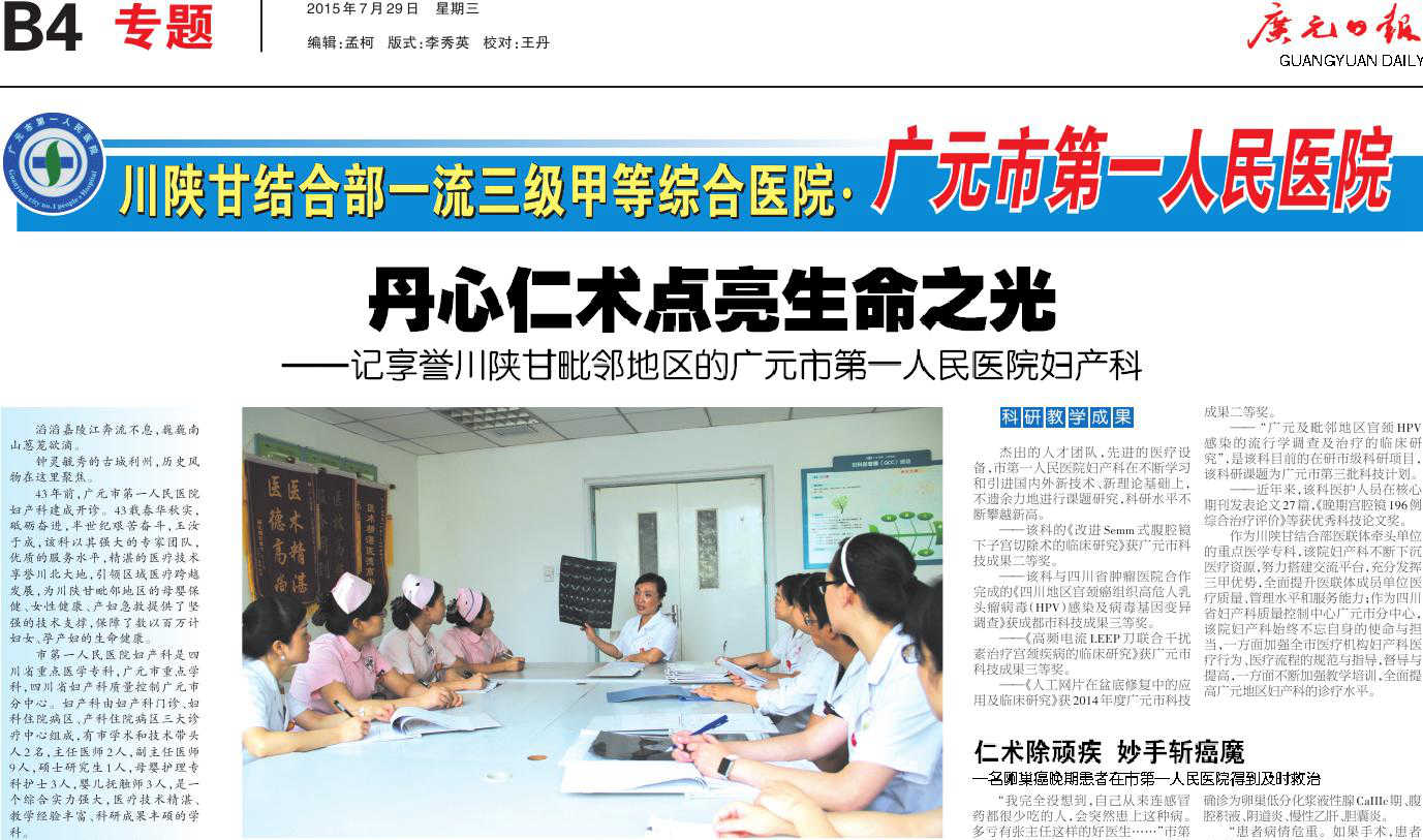丹心仁术点亮生命之光—记享誉川陕甘毗邻地区的广元市第一人民医院妇产科
