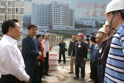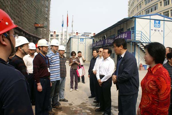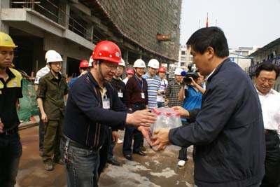 51日上午,市委书记罗强、副书记、常务副市长王菲、副市长赵爱武、政协副主席王治平一行在市卫生局局长康全德的陪同下,来到市第一人民医院外科大楼建设工地,向工地工作人员致以节日的问候,代表市委、市政府送去了水果和矿泉水。