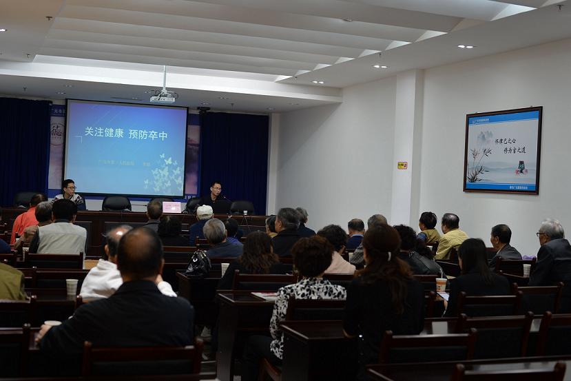在世界脑卒中日到来之际,我院神经内科医师李超于10月22日走进广元市国税局开设了一堂别开生面的脑卒中知识讲座。帮助国税局的退休职工们了解了脑卒中的相关知识,以达到积极预防卒中,远离卒中的目的。市国税局近40名退休职工参加了此次健康讲座。