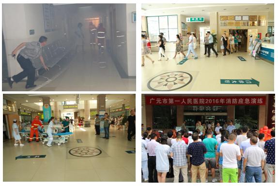 为了增强医院员工消防安全意识,提高员工在火灾中组织被困人员逃生自救技能和员工扑救初期火灾技能。按照院发〔2016〕36号文件《关于2016年安全生产月活动实施方案通知》要求。经院安办组织,院办、保卫科、门诊部、急诊科及各职能科室100人参加了在门诊大楼举行的“2016年消防应急疏散演练”活动。此次活动特邀广元市消防支队防火处和东坝派出所派员现场指导。