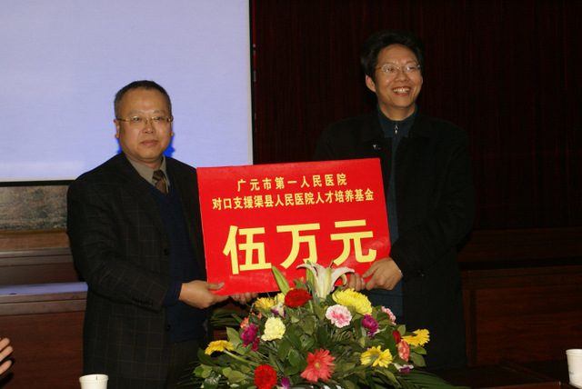 专家组在院长李健、纪委书记蒋光全和职能科室负责人的陪同下,对县人民医院住院大楼、改建后的门诊大楼、澳门特区政府援建的外科综合大楼以及由国家投资待建的第三门诊大楼进行了实地考察。考察结束后,在县人民医院六楼会议室召开座谈会,观看了渠县“7•18”洪灾县人民医院受灾实况录像。会上,李健院长介绍了县人民医院基本情况和近年来的发展情况;杨晋平院长对县人民医院近年来工作取得的优异成绩和在“7、18” 洪灾中表现出的先进事迹给予了高度评价,并代表我院向渠县人民医院捐赠了5万元对口支援人才培养基金;双方就医院综合管理、医疗质量、医疗服务、人才培训、科研和专科发展以及标准化、规范化、制度化建设等方面交换了意见和看法。杨晋平院长表示,下一步工作将根据渠县人民医院需求,再制定年度计划,并按照计划实施,将不遗余力地对渠县人民医院在人才培养、专科建设、医院升级达标等予以大力支持和帮助。