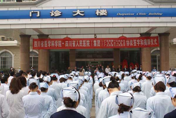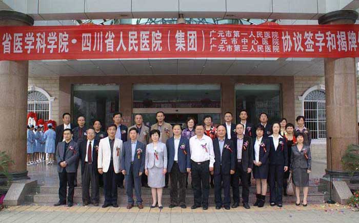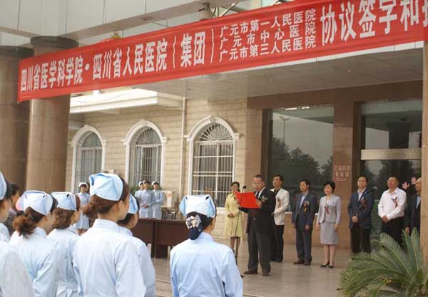 仪式上,杨晋平院长在致辞中衷心感谢四川省医学科学院·四川省人民医院 长期以来对我院医疗、教学、科研工作的关心支持,并表示将紧紧抓住这次难得的合作机会,认真学习省医学科学院·省人民医院的先进管理经验,学习专家们精湛的医术、优质的服务和良好的工作作风,狠抓医院内部管理,不断改善就医条件,努力提高服务质量,不断提升医疗服务水平,为广元人民的健康多作贡献。省医学科学院·省人民医院副院长代小舟介绍了省医学科学院·省人民医院近年来通过横向整合医、教、研资源,探索体制机制创新,开展高新医疗技术,提升教学、医疗、科研工作,出色完成突发公共事件紧急医疗救援任务,并积极实施“松散型医院集团”和“全域医疗服务体系”发展战略意义。康全德局长在讲话中希望加入省医学科学院·省人民医院医疗集团的我市三家医院要紧紧抓住这个机遇,充分运用省人民医院的教学科研优势,提高医疗技术水平和综合服务能力。市政府赵爱武副市长作在讲话中要求加入省医学科学院·省人民医院医疗集团的我市三家医院要抓住机遇,锐意开拓,主动联系交流,虚心接受指导,努力借助省医学科学院·省人民医院的医疗、教学、科研技术优势,促进自身医疗技术水平和综合服务能力的提高,以优美的环境、良好的信誉、精湛的技术,为广大人民群众造福,为我市的医疗卫生事业发展做出积极贡献!