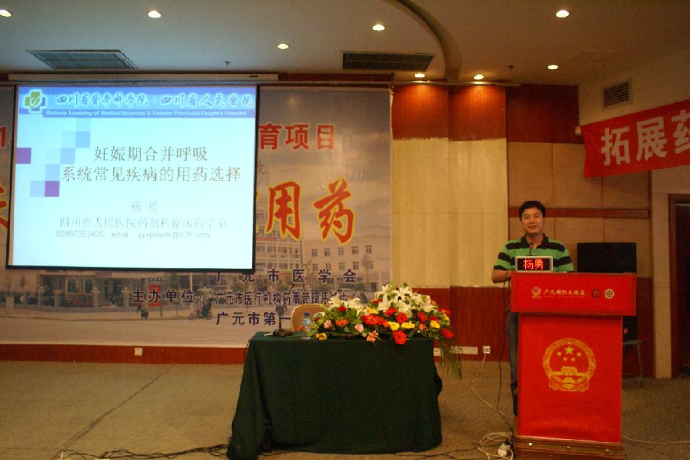 广元市医学会、广元市医疗机构药事管理质控中心和第一人民医院主办的2011年四川省医学继续教育项目《临床药学与合理用药》于6月10~15日在广元国际大酒店成功举办。来自成都、绵阳、达州、广安、南充、巴中多家医院、市各直属医院、各县区医院、市内各民营医院的400余名代表参加了大会。